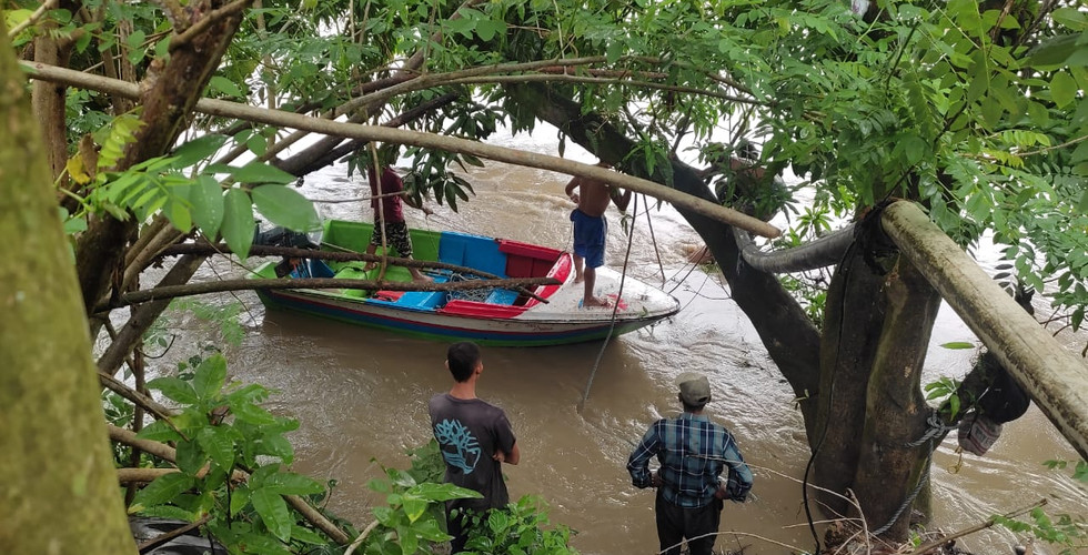 Unidades del Cuerpo de Bomberos de Concordia adelantan labores de rescate en el río Cauca en el sector San José del Golpe en la vía Bolombolo - San Fe de Antioquia.