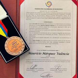 “Estamos muy contentos por recibir este importante reconocimiento por parte de la Federación Nacional de Municipios. Indudablemente el trabajo en equipo que se vienen realizando desde la Secretaría de Tránsito y Transporte está generando sus frutos. Nosotros hemos venido buscando alternativas y entendiendo que en los próximos años vamos a tener un crecimiento importante en la cantidad de vehículos que se movilizarán por nuestras vías”. Afirmó el alcalde Mauricio Márquez Valencia.