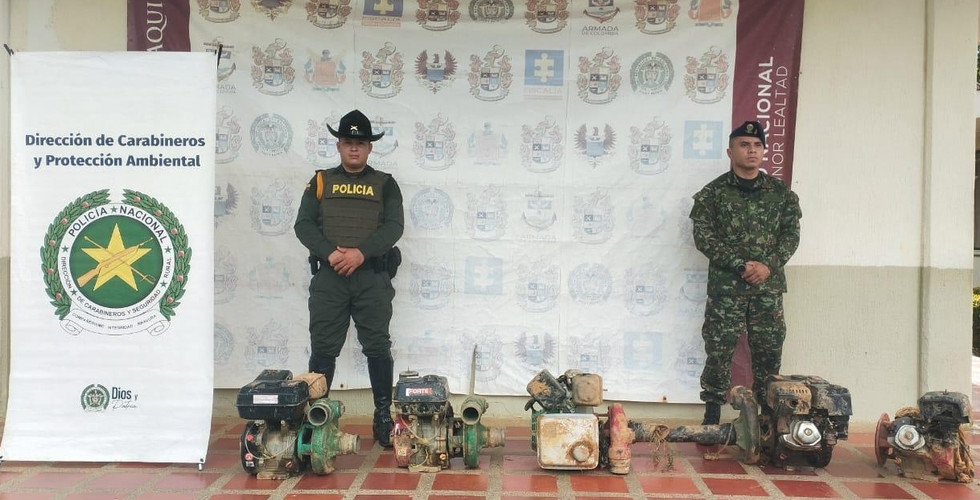 Las acciones operativas se extendieron asimismo a labores de control y prevención en los ejes viales, en Támesis, en el marco de la estrategia de protección al medio ambiente y la biodiversidad, y en coordinación con el Ejército Nacional, se realizó la incautación de 5 motores y 4 bombas de succión, lo que contribuye a mitigar los delitos ambientales en sus diferentes modalidades en el Departamento de Antioquia, y en La Pintada, mediante un puesto de control y acciones propias del servicio de policía, se incautaron 10 semovientes equinos que eran transportados en un vehículo tipo camión. Esta incautación se realizó por transitar con guía magnética sin cumplir con la resolución 110321 del 29/10/2021 del ICA.